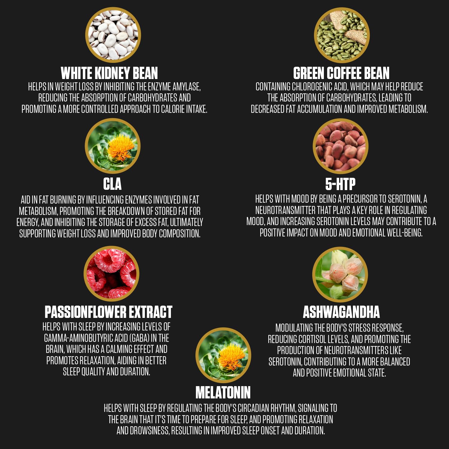 - Appetite Control: Say goodbye to nighttime cravings with the appetite-controlling properties of this unique formula. By curbing late-night snack urges, you'll be better equipped to stick to your dietary plan and maintain a caloric deficit for optimal fat loss.