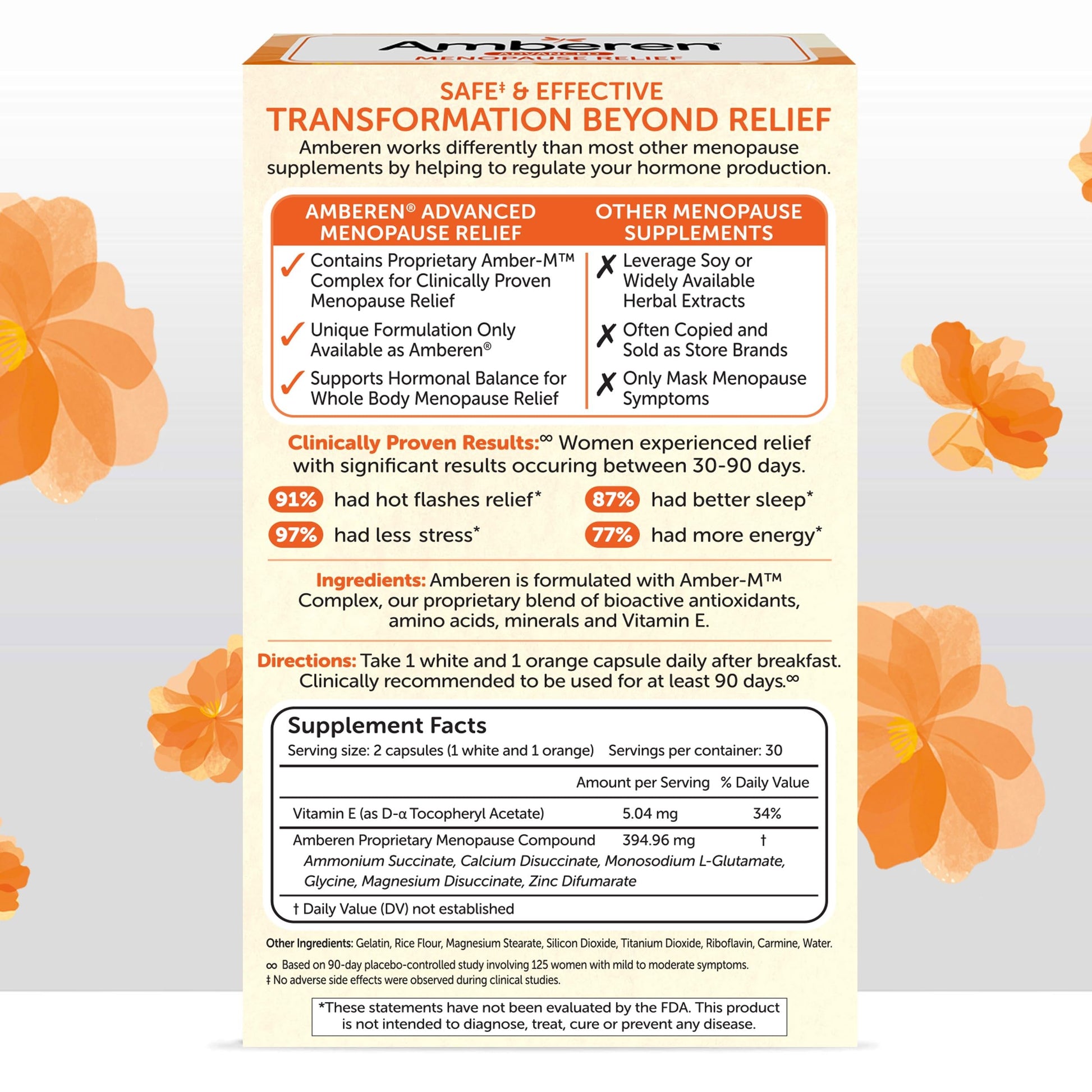 Amberen: Safe Multi-Symptom Menopause Relief. Clinically Shown to Relieve 12 Menopause Symptoms: Hot Flashes, Night Sweats, Mood Swings, Low Energy and More. 1 Month Supply