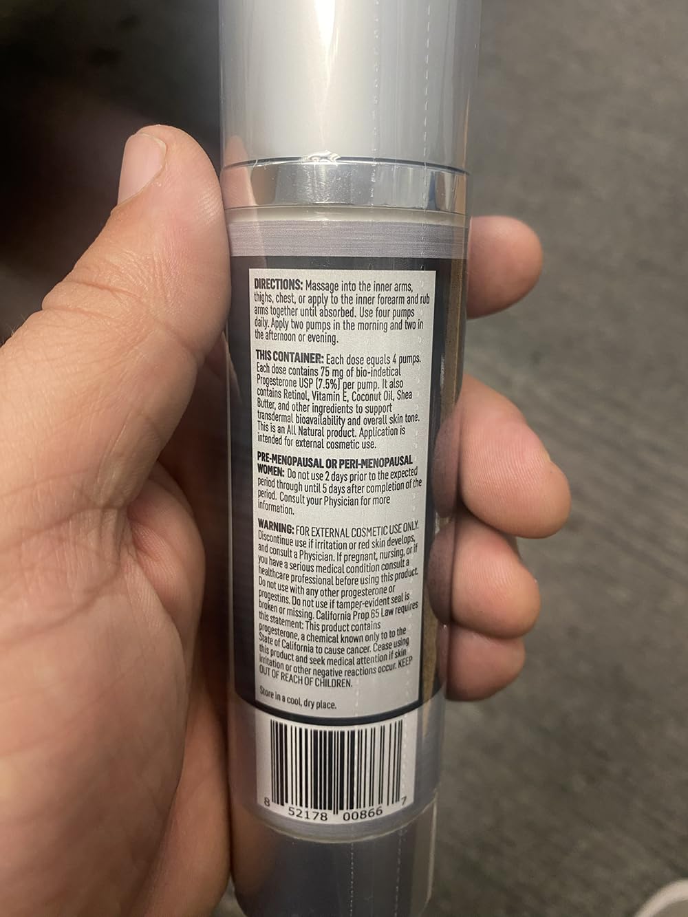 - Best Value! This product can last up to five times longer than the cheap brands on Amazon. The easy-to-use pump delivers approximately 75 mg of USP Progesterone each dose (4 pumps). Other progesterone creams would require a literal handful of cream to get a comparable dosage. With a 90+ day supply, this is ONLY .59 per day!