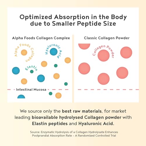 - ✦ QUALITY RAW MATERIALS: Like all Alpha Foods, we only use (branded) raw materials tested for potency and purity in our collagens, such as the bioactive collagen peptides from Gelita. In addition, we deliberately combine our collagen with the synergistic structural protein elastin and the active ingredient hyaluronic acid.