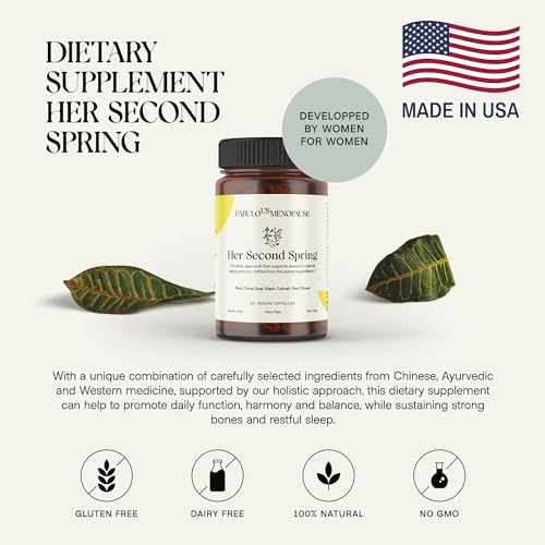 - ✅ DIETARY MENOPAUSE SUPPORT: “Her Second Spring", crafted from expert knowledge. Blends natural Chinese, Ayurvedic, & Western herbs, vitamins and minerals for hormonal balance, energy boost, bone health, & restful sleep. Key ingredients include B12, B9-Folic Acid, B6, B5, Black Cohosh for menopause hot flashes, Dong Quai, Rhodiola Rosea, Red Clover, Kudzu, Iodine, Noni.
