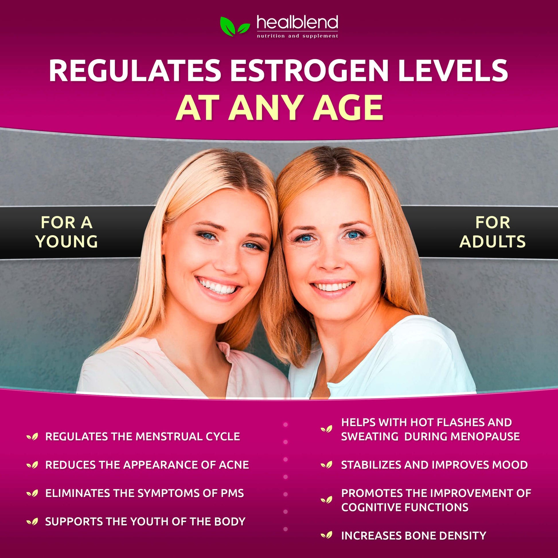 - ADDITIONAL BENEFITS: Helps to increase bone density, improves mood and sleep, maintains a stable emotional state during PMS and menopause. Provides a healthy water balance.