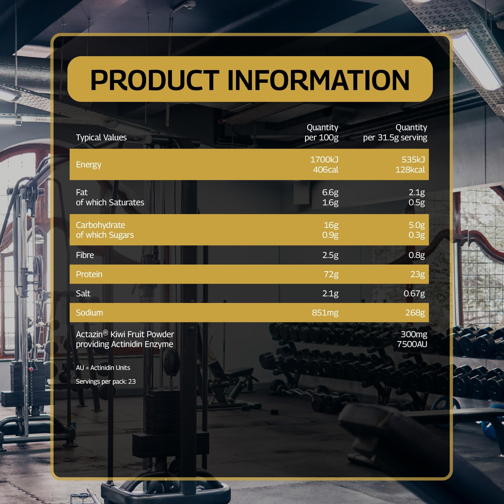 Adults: Suggested serving size 31.5 grams (approximately 1 level scoop) to achieve 23 g protein. Mix with 300ml water.