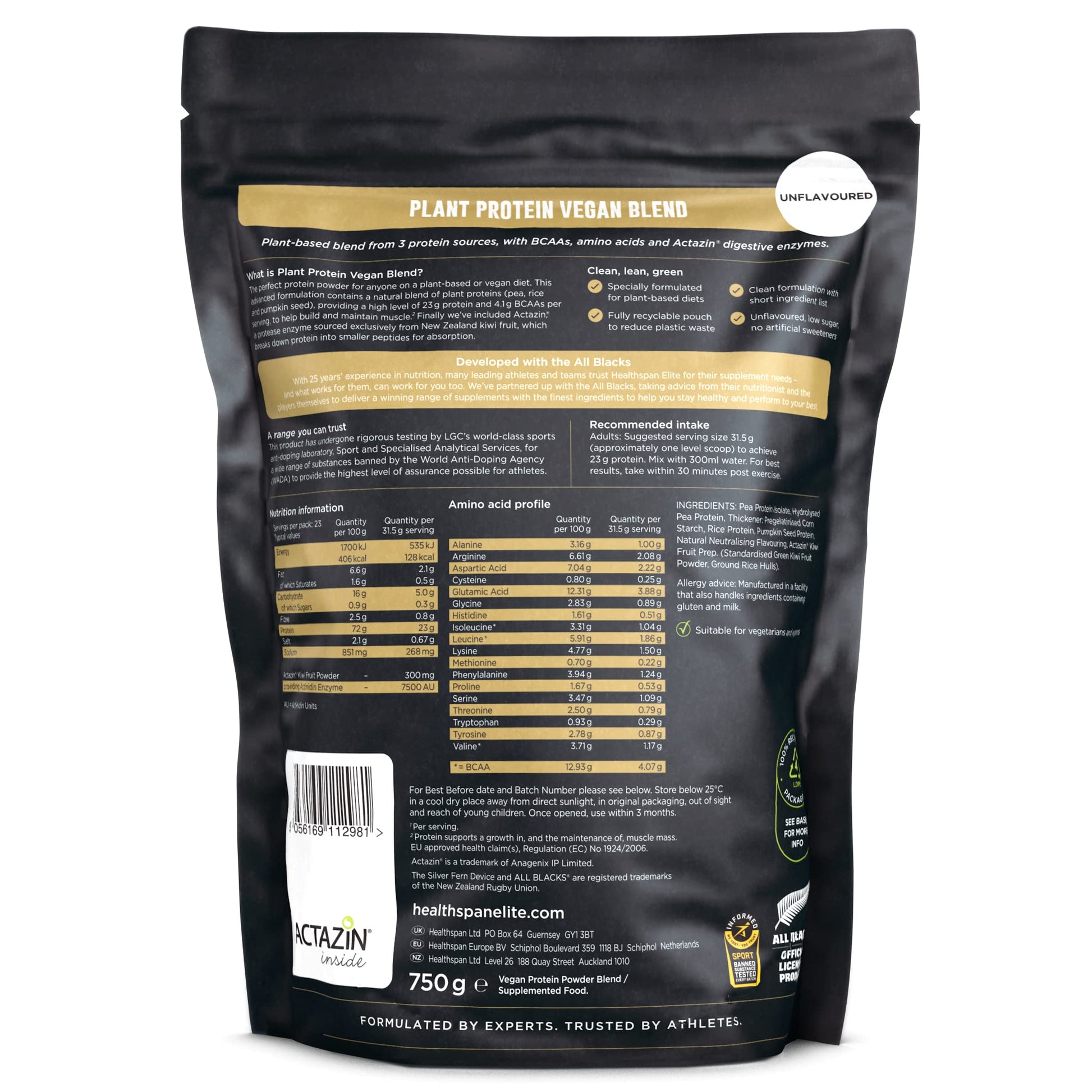 Healthspan Elite Plant Protein Vegan Blend (750g) | All Blacks Partner | 23g Protein Per Serving