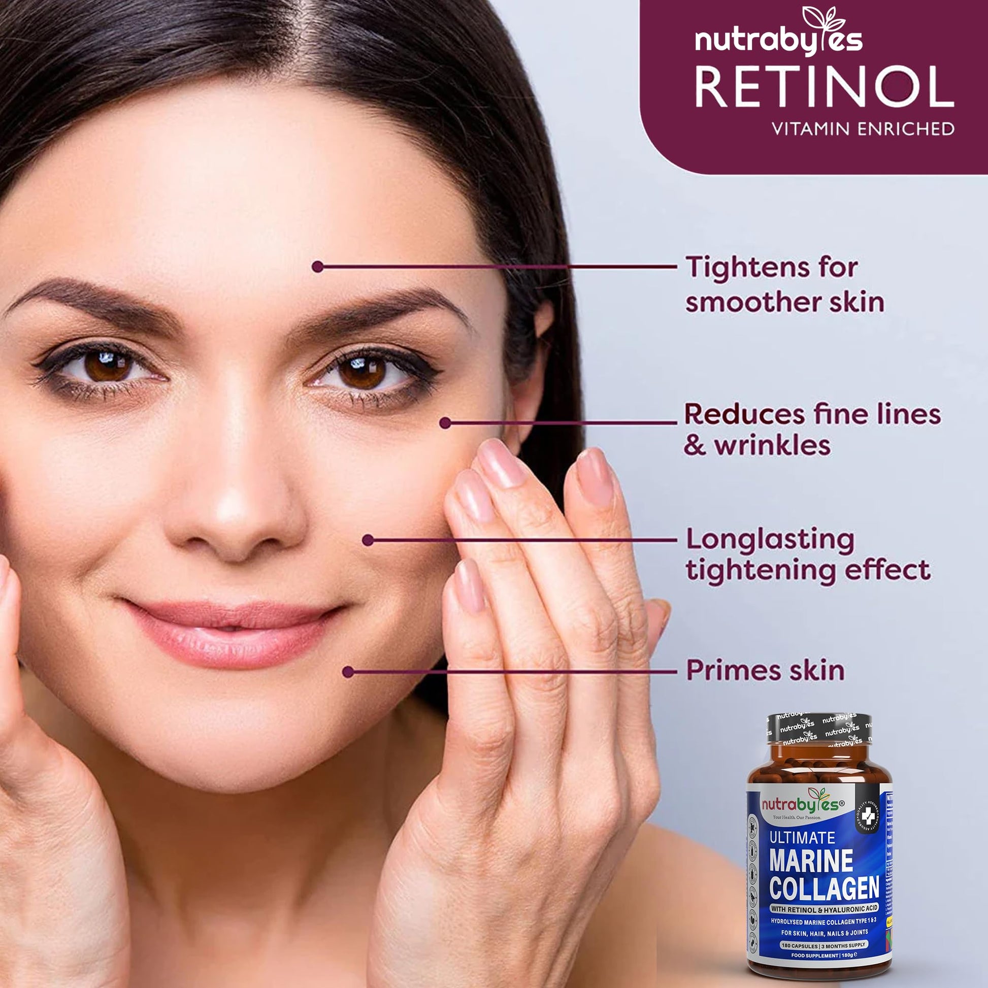 - ✅ WHY TAKE THE ULTIMATE NUTRABYTES MARINE COLLAGEN CAPSULES? Nutrabytes collagen capsules contain 900 mg of pure hydrolysed marine collagen peptides per serving (serving size of 2 capsules). Nutrabytes collagen supplement also contains 100mg Hyaluronic Acid, 200mg Vitamin C and 1000mcg of Retinol. This is the most comprehensive marine collagen supplement which provides advanced support for the overall health of your skin, hair, nails and joints.