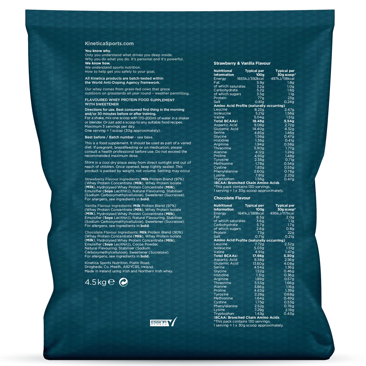Kinetica Premium Whey Protein Powder | Grass Fed | Chocolate | 4.5kg | 150 Servings