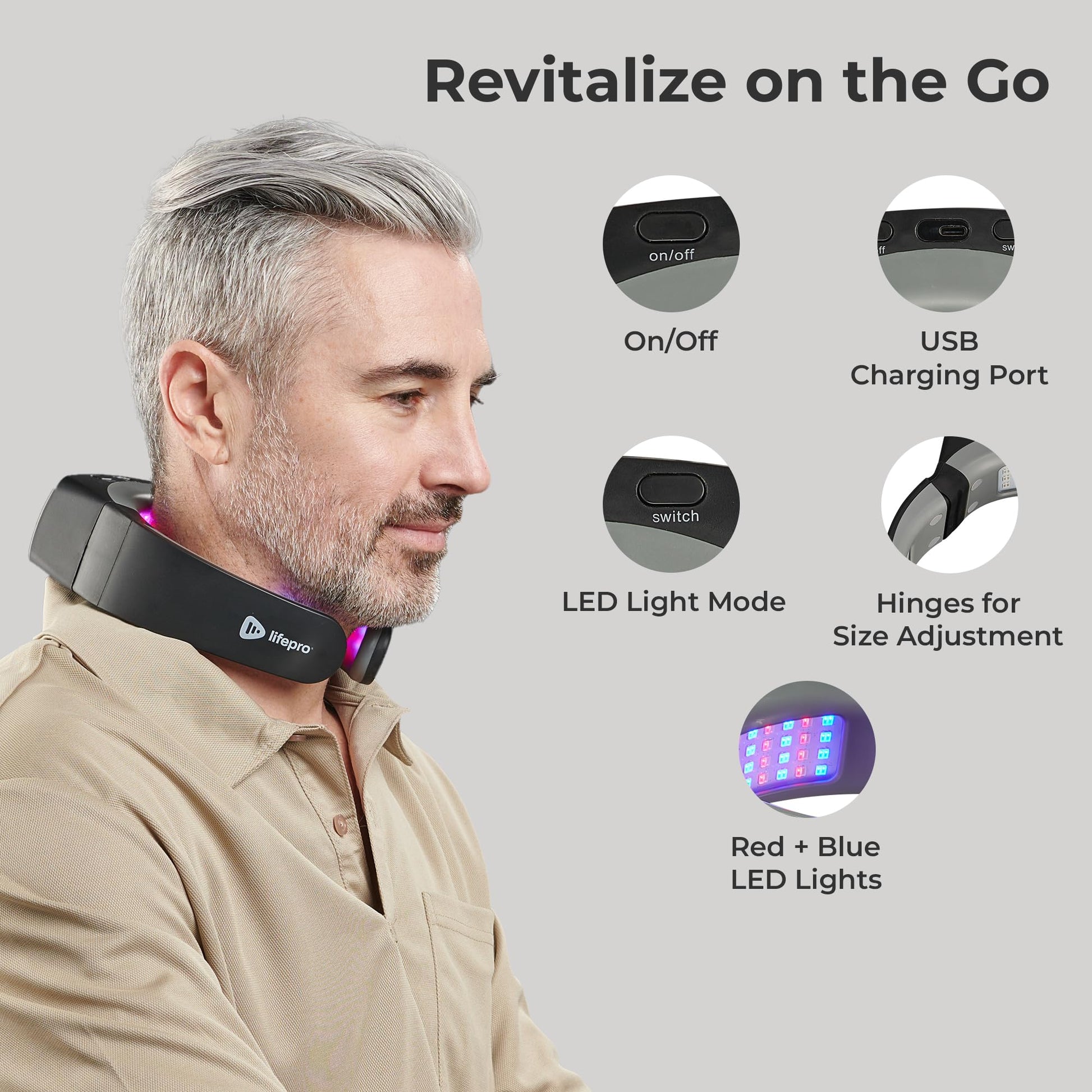 Lifepro Red Light Therapy for Neck - Compact & Rechargeable Red Light Therapy Device- On-The-Go