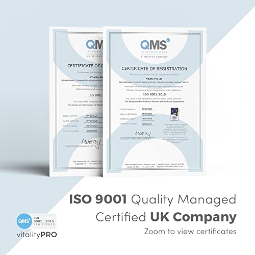 *Vitality Pro's commitment to excellence is reflected in our strict adherence to manufacturing standards, third-party purity testing, and ISO 9001:2015 quality certifications.