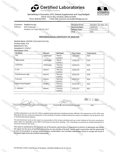 - ✔ Purity and Safety Assurance: Your health is our foremost concern. Independent laboratories have tested this marine collagen powder to ensure its purity and safety, with certifications verifying it's free from microbiology and heavy metals. The product maintains the highest quality, with no fillers, GMOs, artificial colours, preservatives, or flavours, offering you a trusted and pure supplement.