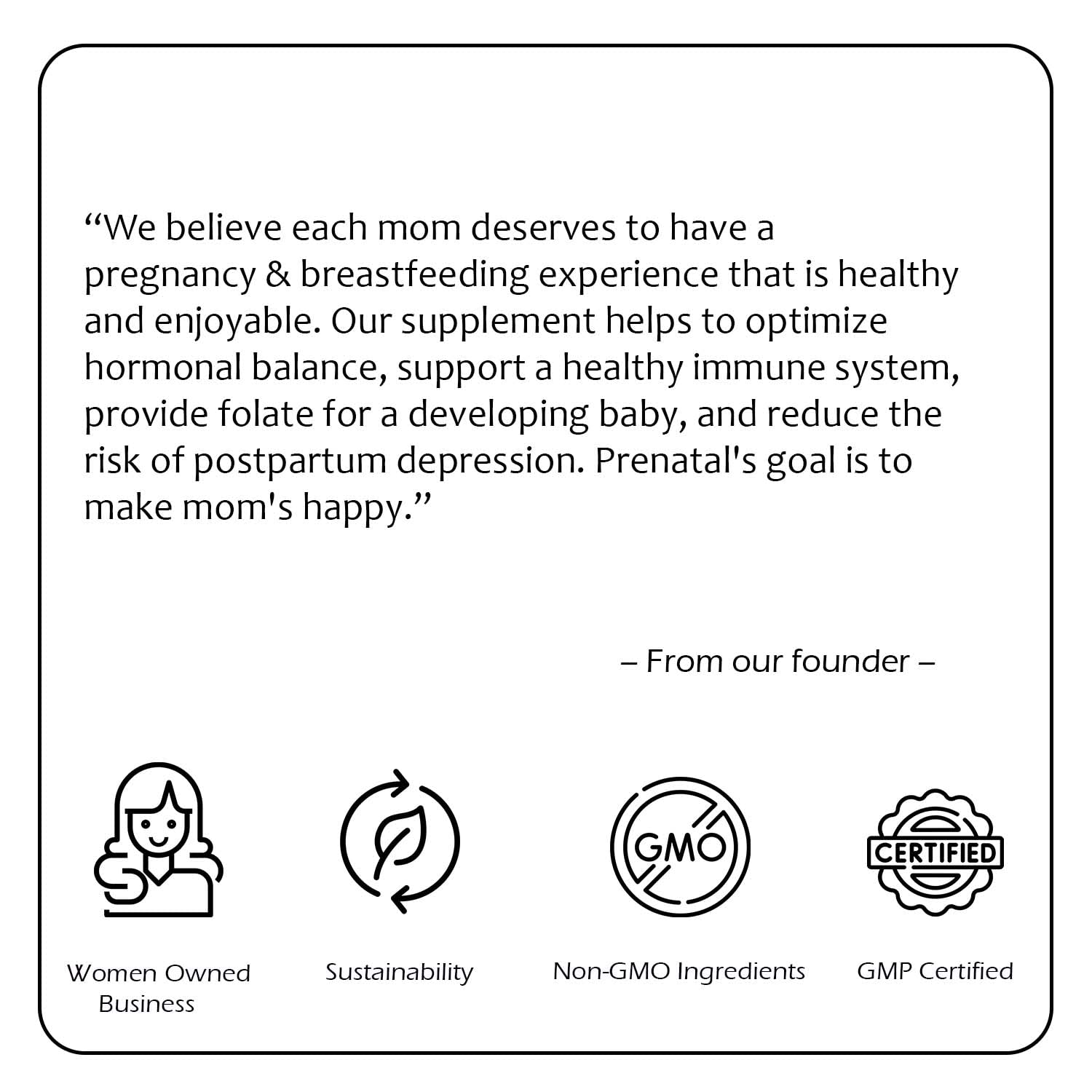 - PRENATAL DHA: Essential DHA helps support a baby's developing brain and eyes as well as support a mom’s skin, hair and nail