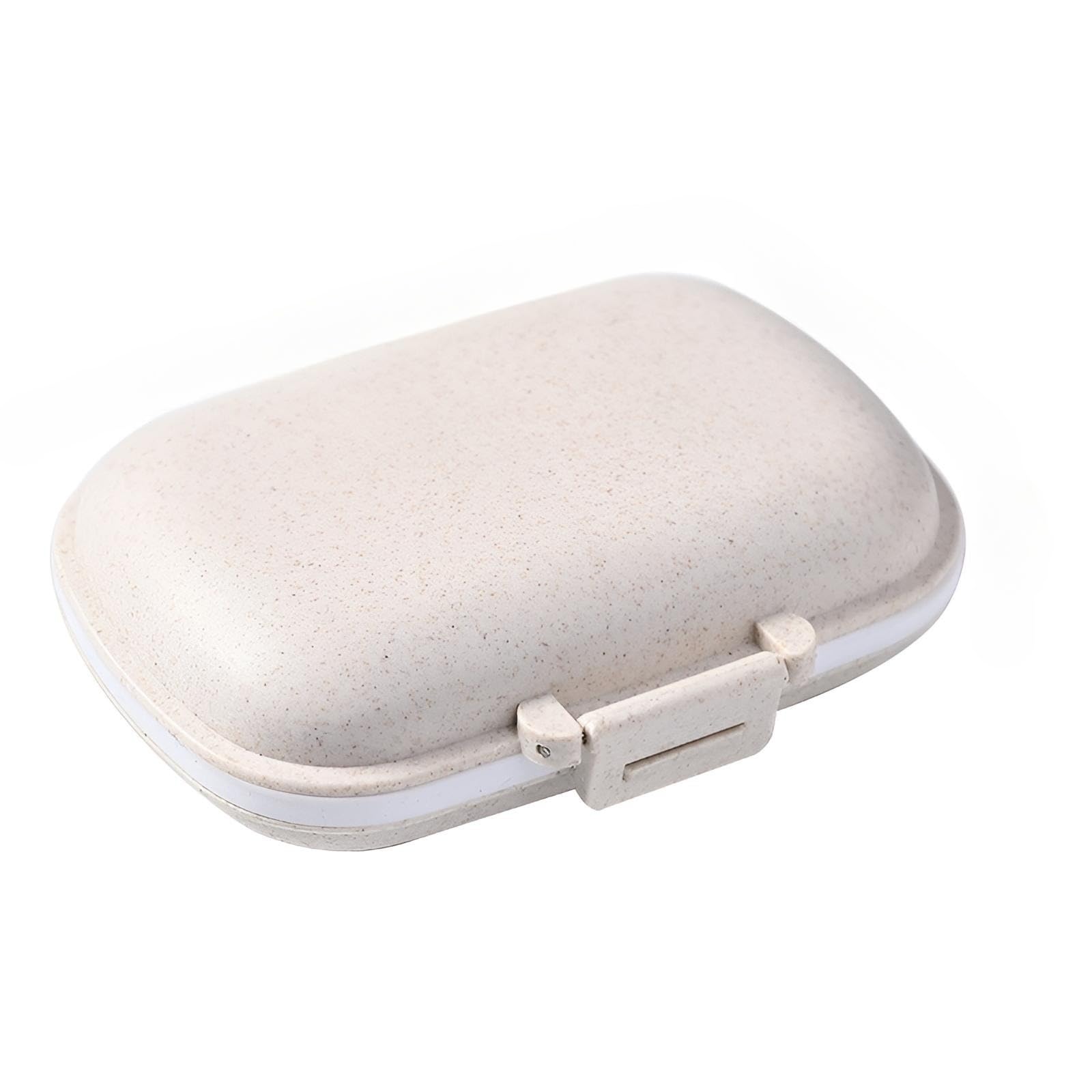 Comes with a Travel Pill Organizer, 8 Compartments Portable Pill Case. Good Material, large capacity with PORTABLE SIZE of 4.3 x 3.5 x 1.2 inches. The outer container and each compartment have a lid, will not spill the pills due to the dropping of the pill box.