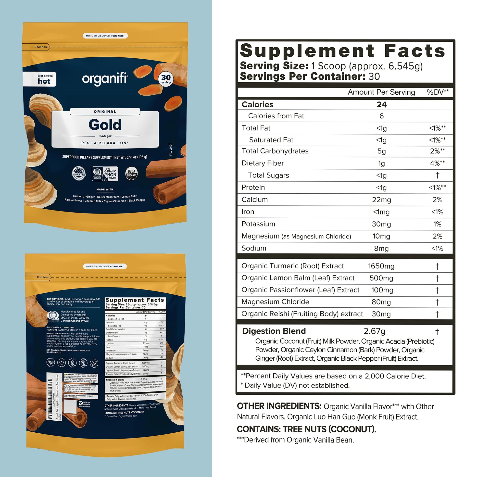 Details: Organifi: Gold - Superfood Supplement Powder - 30 Day Supply - Experience Deeper Sleep- Boosts Immune System and Cognitive Function - Turmeric and Reishi Infused - Golden Milk - Detox -3pk