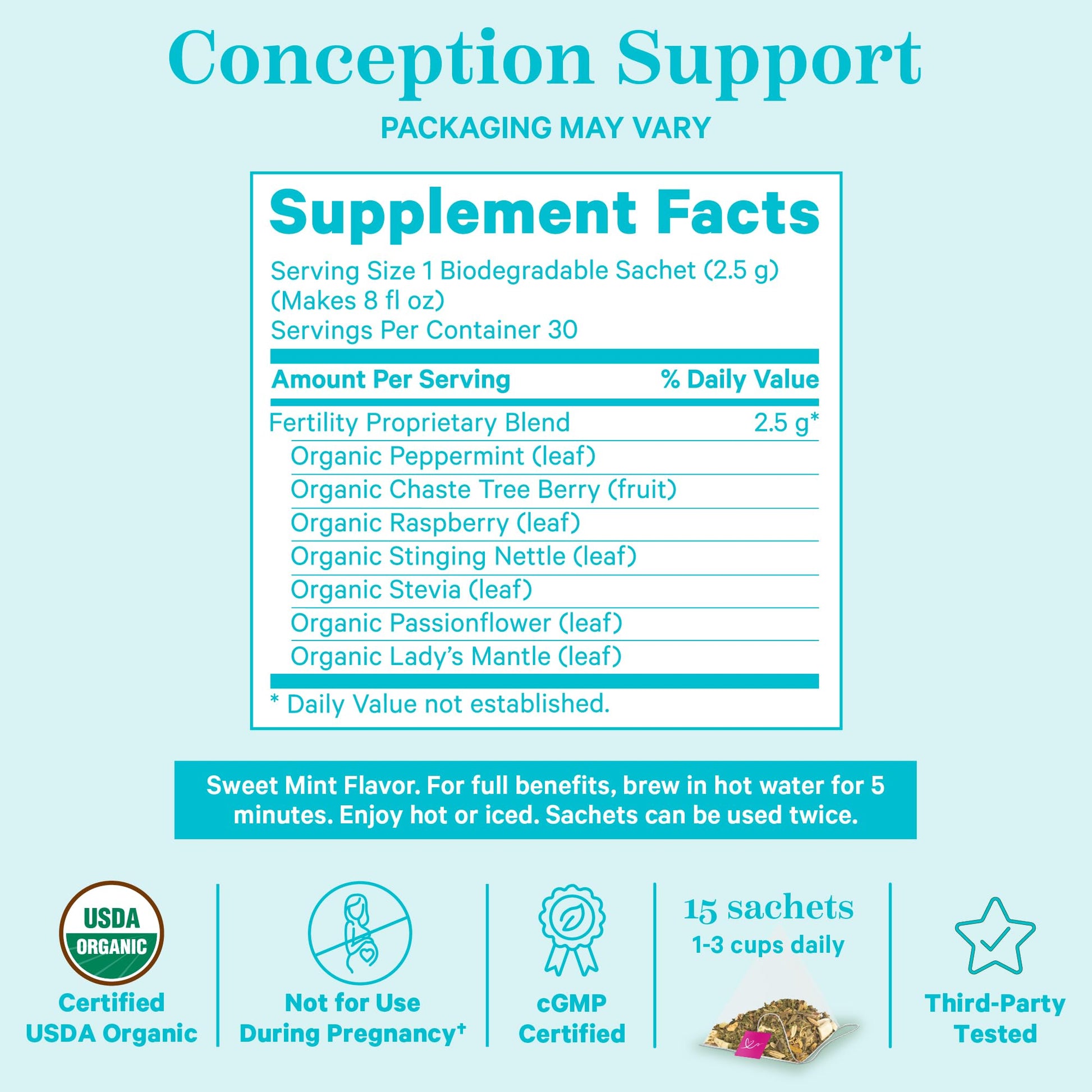 - Not just an ordinary vitex supplement, our herbal tea helps nourish and support your body while you're trying to conceive with essential nutrients and antioxidants. As Fertility Tea is designed to support natural fertility, please be mindful that it can affect your menstrual cycle. Support a regular cycle, and help your body acheive hormonal balance - a predictable period and ovulation are crucial for conception!