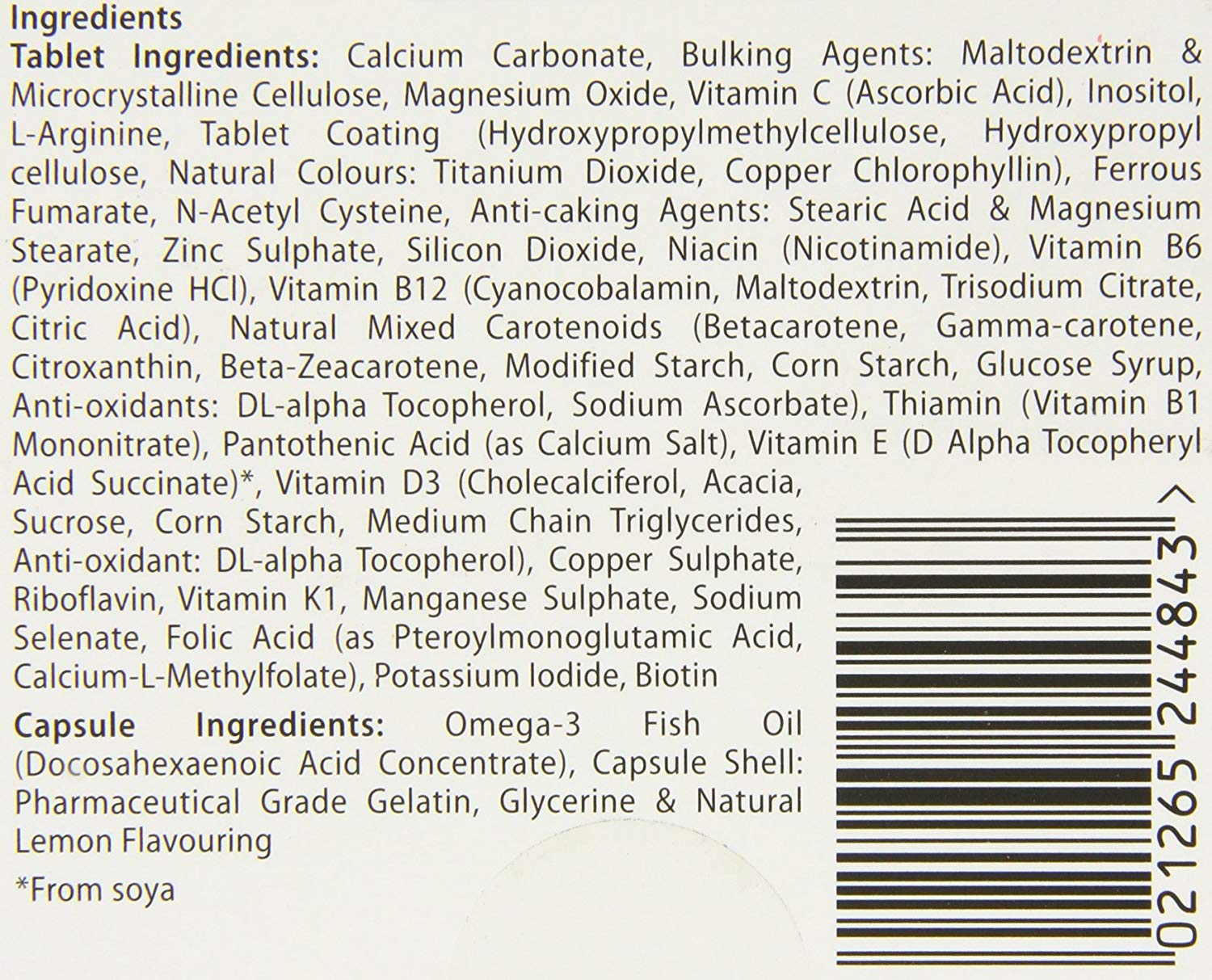 - The pack also contains a 300mg Omega-3 DHA capsule