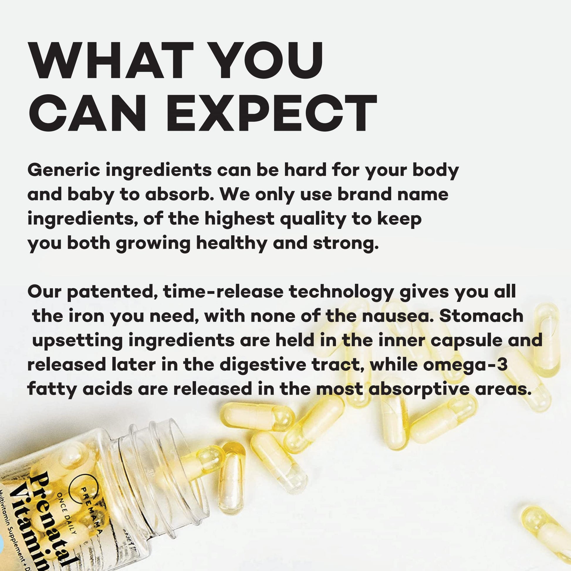 - PRENATAL VITAMINS WITH DHA, B6, D3 & BIOTIN: Vegan DHA sourced from algae, no fishy taste; 30mg of B6 for morning sickness; Choline for baby's spine and brain development; D3 is helpful in avoiding pre-eclampsia