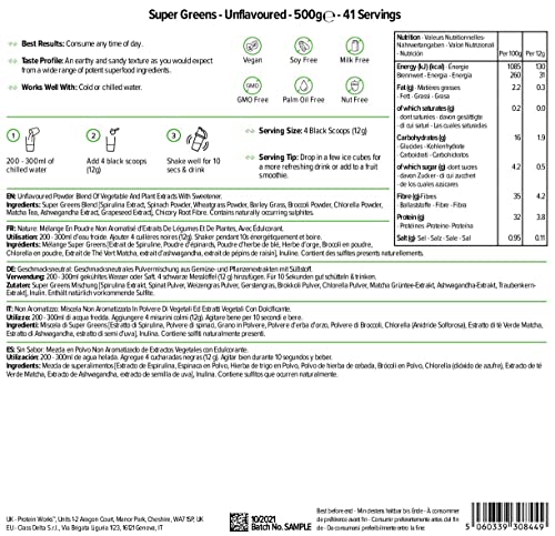 - CONVENIENT SUPERFOOD SHAKE: Ultra convenient and great tasting to consume on the go, simply scoop into a Protein Works shaker with water, shake and you've got some epic flavours to enjoy, Your greens never tasted so good!