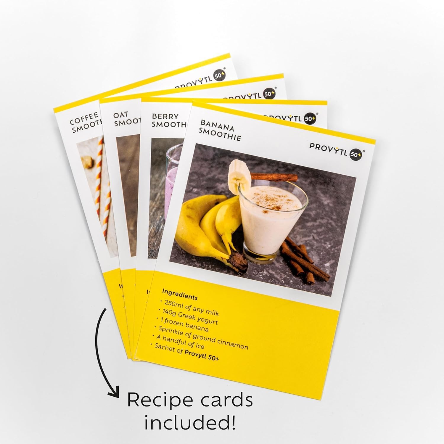 - INCLUDES SHAKER BOTTLE & RECIPES - A great first step for those new to Provytl 50+, our trial pack includes everything you need to discover how easy it is to add a protein boost to your drinks, meals and bakes. With a shaker bottle and recipe cards to get you started, enjoy a little taste of Provytl 50+