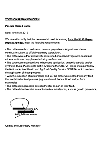 - ✅ Pasture Raised Cattle - We source our collagen protein powder from grass fed Argentinian cattle. Not subjected to any hormone application, anabolic steroids, or synthetic drugs. Our Collagen is gluten, soy, sugar, and dairy free & BSE safe.