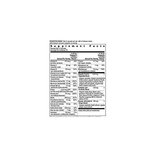 - MULTIVITAMIN TO NOURISH & PROTECT: A blend of essential vitamins and minerals, antioxidants, probiotics, and whole foods support digestion and liver health with Vitamins A, C, D2 and iron support blood, bone, skin and immune health