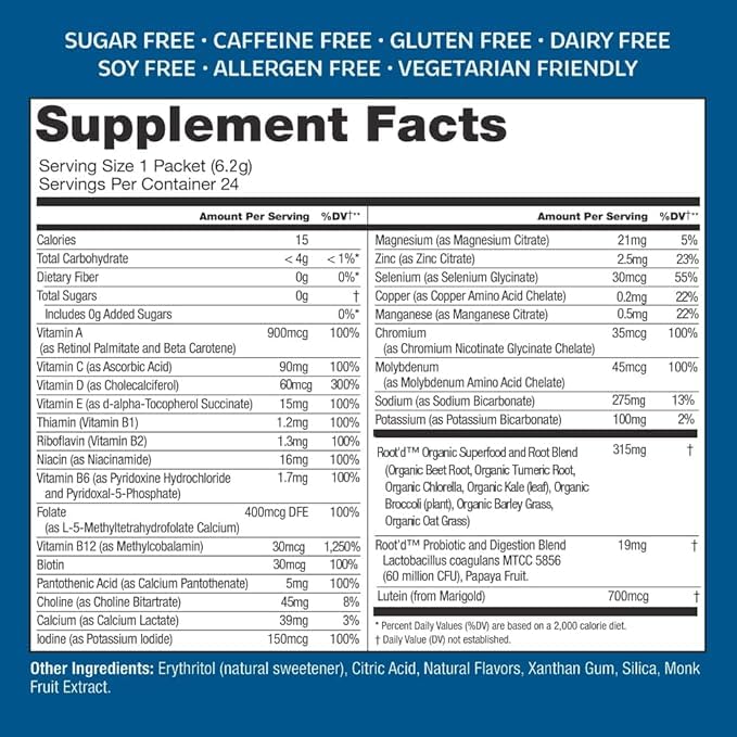 - 🔬 𝗧𝗵𝗶𝗿𝗱 𝗣𝗮𝗿𝘁𝘆 𝗧𝗲𝘀𝘁𝗲𝗱: Every ingredient and finished product made and used in powder multivitamin are Third Party Verified by ISO-certified labs across the United States of America after vigorous testing, ensuring the potency, purity, and integrity of the Root'd multivitamin powder you trust.