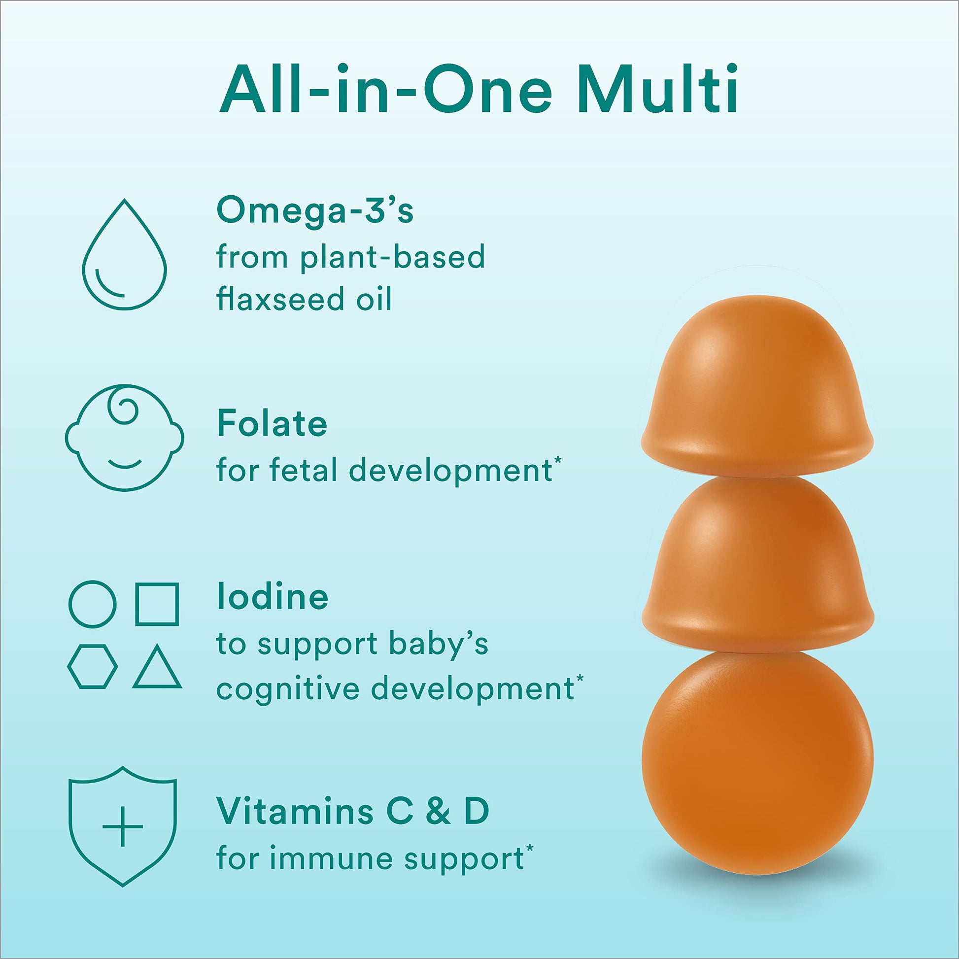 Olly The Essential Prenatal Gummy Multivitamin, 30 Day Supply ( Gummies), Sweet, Folic Acid, Vitamin D, Omega 3 DHA, Chewable Supplement, White Citrus, 60 Count (Pack of 1)