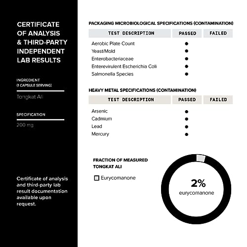 - The Highest Dosage of Active Ingredient (At the Greatest Value) - Each batch of our Tongkat Ali are third-party lab tested to ensure a minimum of 2% eurycomanone, the main active compound that gives tongkat ali its incredible bioactive effects. Most brands of tongat ali and tongkat ali fadogia agrestis contain far less than 1%