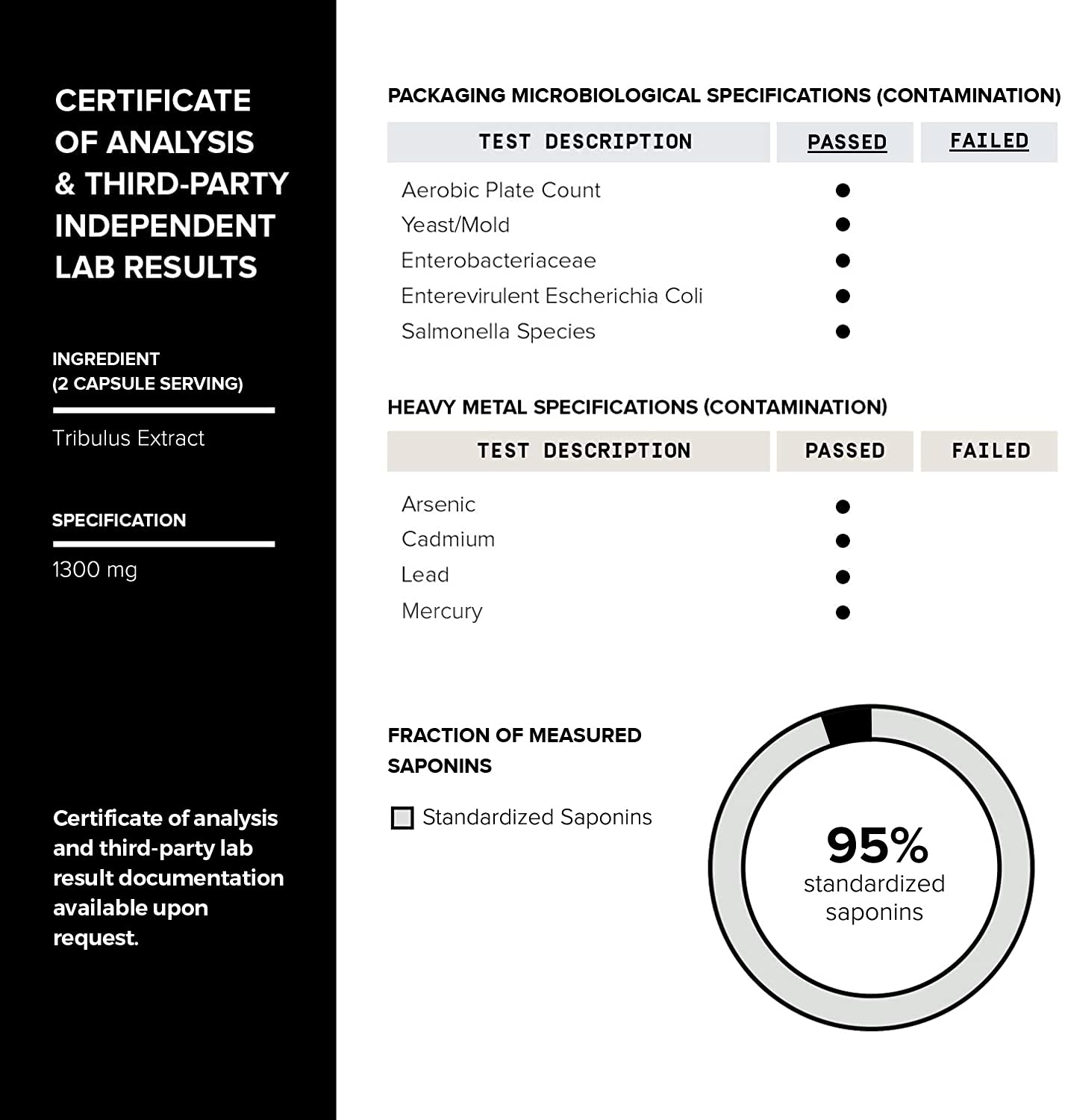 - More Saponins = More Value - Each serving of our 1300 mg tribulus provides you with a whopping 1,235 mg of saponins, making this one of the highest strength tribulus supplements available.