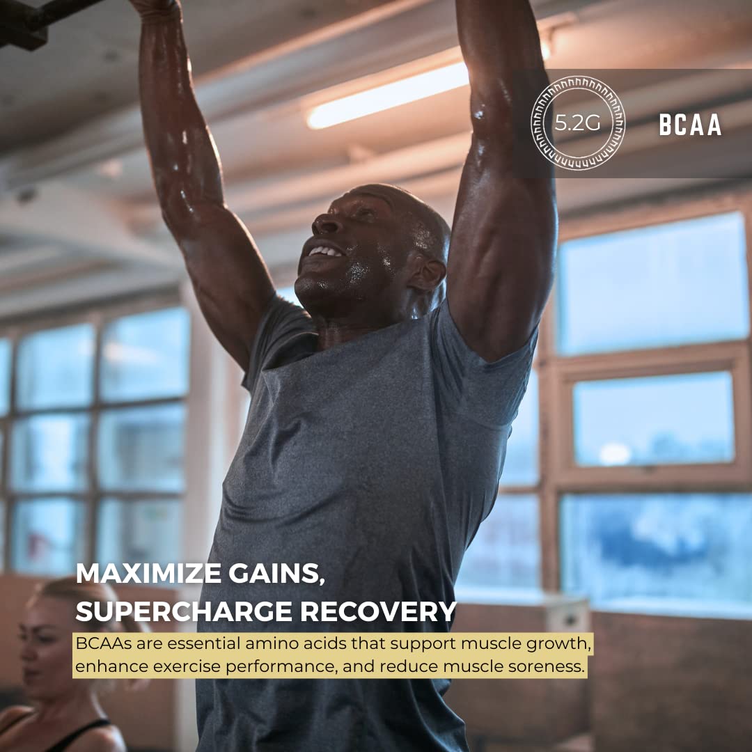 - Contains 5.2G BCAA per serving, improving the strength and edurance during training. Also improving recovery and reduce soreness post workout.