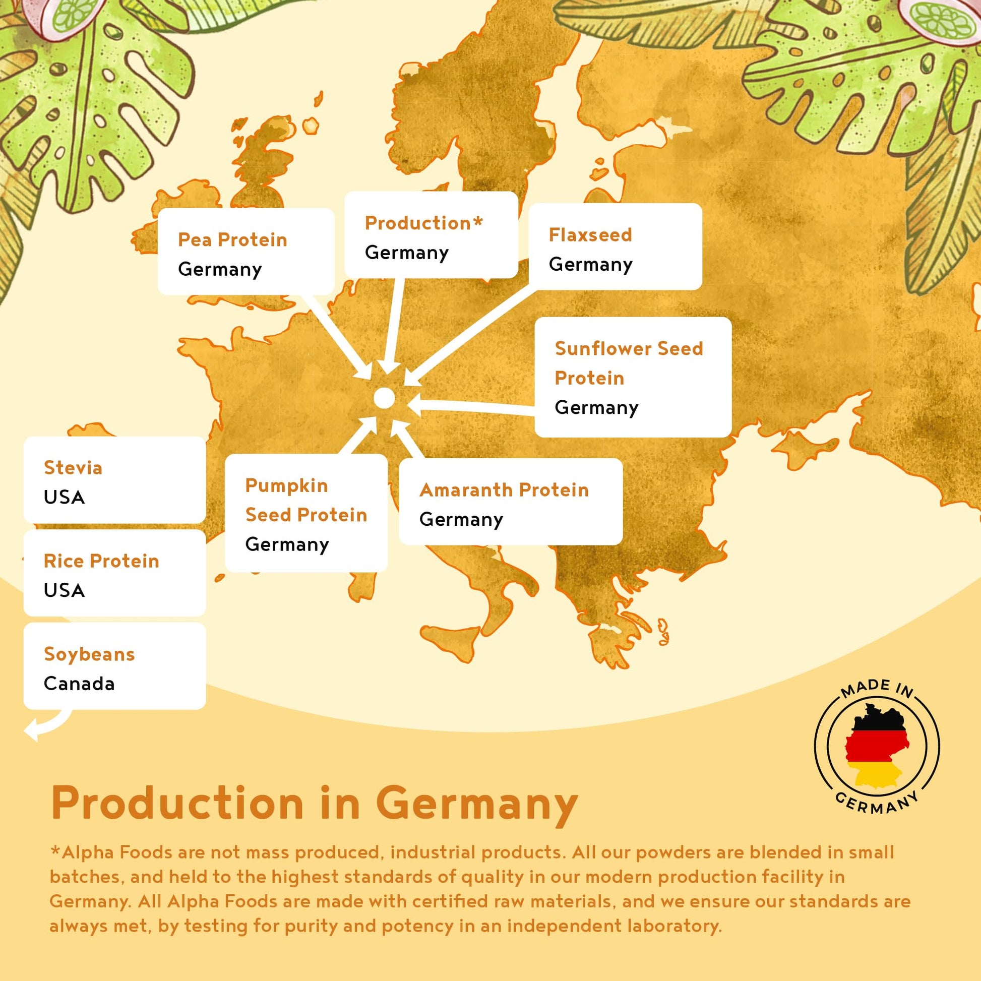 - ✦ PROVEN PURITY AND POTENCY: While we have long-lasting and deeply trusted relationships with all our family-owned farmers and growers, we still have every single batch lab checked by a fully certified and independent German laboratory before it leaves our production facility. Alpha Foods quality products are manufactured in state-of-the-art facilities according to the highest quality standards GMP, ISO and HACCP certified.