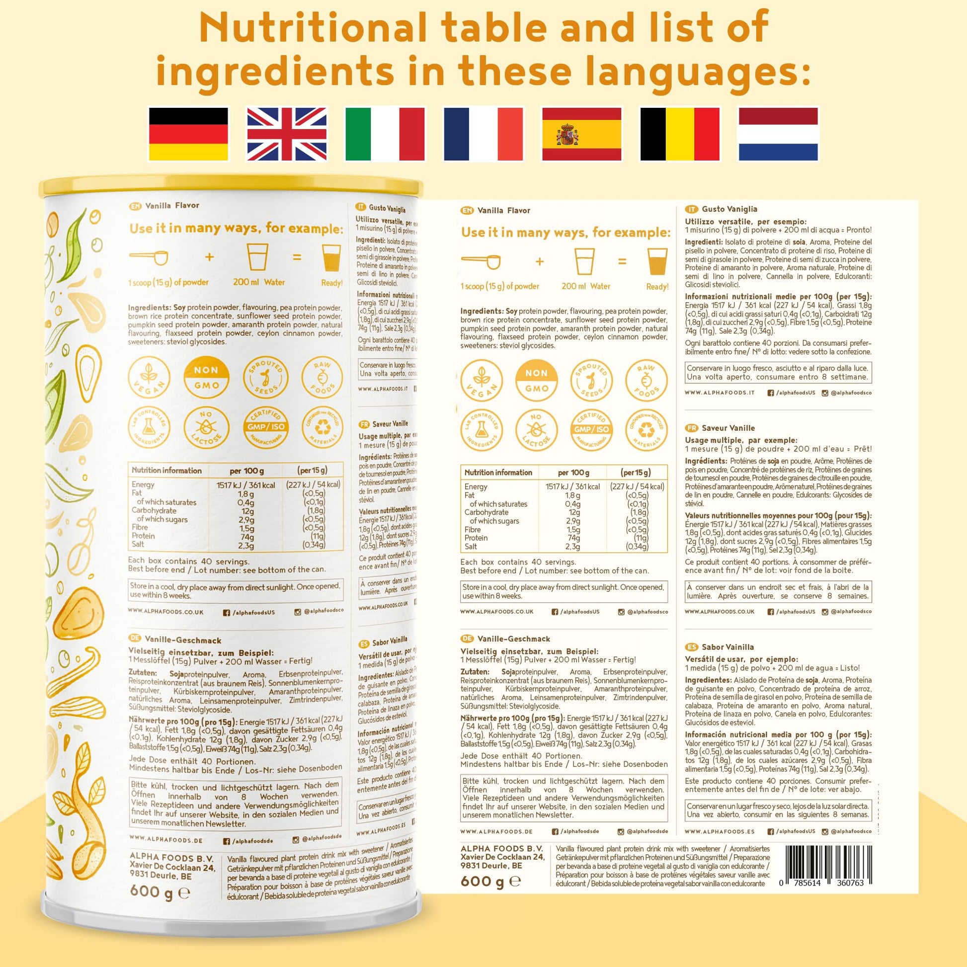 - ✦ DEVELOPED WITH HEART AND MIND: Our raw materials are the foundation and the heart of all Alpha Foods products, and the basis of complex, value-added elixirs, proteins and rituals, bottled in small batches. We develop and produce powerful plant-based foods and nutritional supplements, with clean ingredients to activate your body. Alpha Foods ship directly throughout Europe, without middlemen, to those who prioritise their health and that of their families, in a natural holistic way.