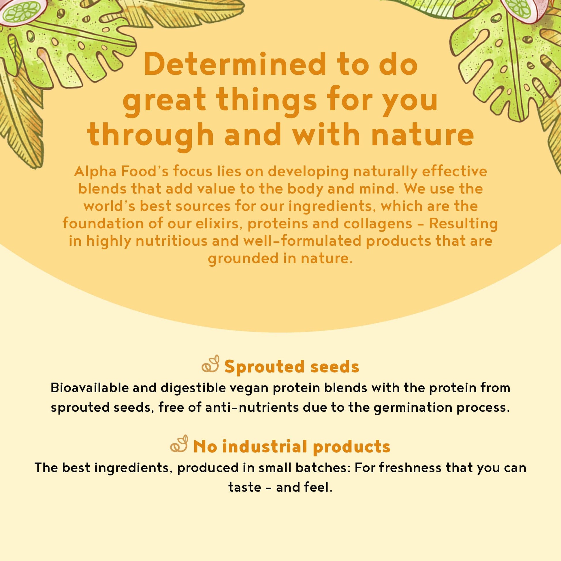 - ✦ DEVELOPED WITH HEART AND MIND: Our raw materials are the foundation and the heart of all Alpha Foods products, and the basis of complex, value-added elixirs, proteins and rituals, bottled in small batches. We develop and produce powerful plant-based foods and nutritional supplements, with clean ingredients to activate your body. Alpha Foods ship directly throughout Europe, without middlemen, to those who prioritise their health and that of their families, in a natural holistic way.