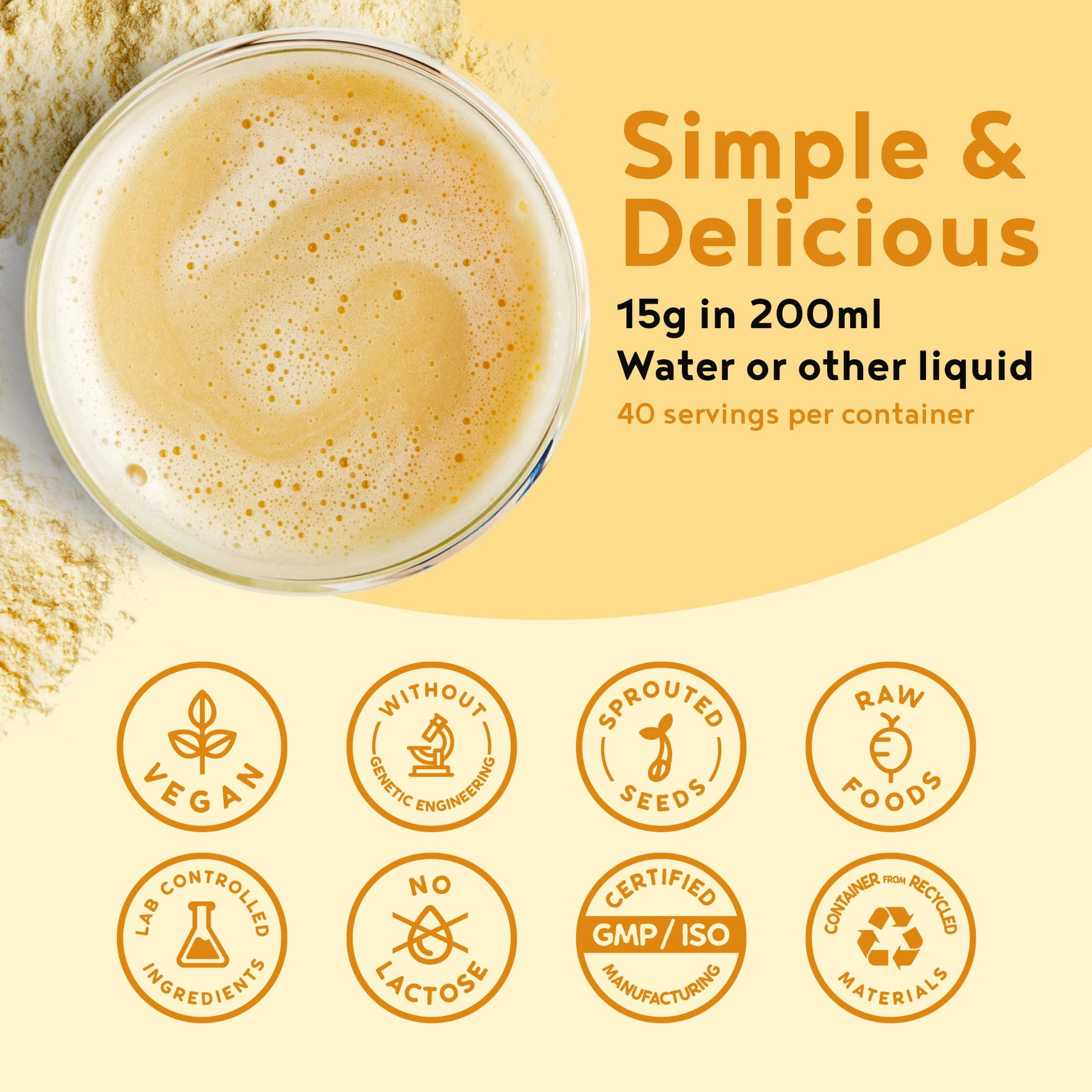 - ✦ PLANT PROTEIN: We use only plant-derived proteins from a range of superfoods including sprouted peas, soybeans, brown rice, sunflower seeds, flax seeds & pumpkin seeds. This provides a well-rounded & highly absorbable vegan protein powder that is 100% plant based (whey free). This Vanilla Vegan Protein is low calorie, low carb, and offers high protein levels as each 15g serving offers 11g of protein, only 1.8g carbs, and <1g fat at only 54 calories!