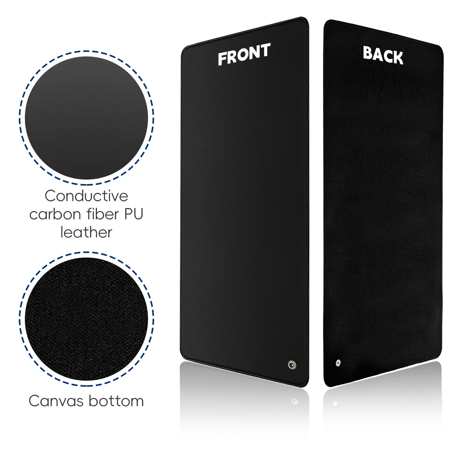 • 1.Ultra-soft Conductive Carbon Fiber PU leather: The grounding mat is made of conductive carbon fiber PU leather fabric, soft and waterproof, easy to clean, well suited for home and office.