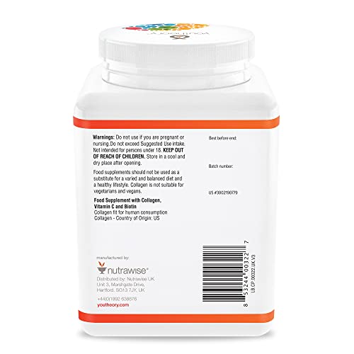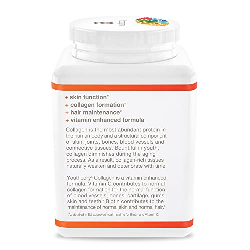 Collagen is the most abundant protein in the human body. Bountiful in youth, collagen diminishes during the aging process. As a result, collagen-rich tissues naturally weaken and deteriorate with time. Youtheory Collagen is a vitamin enhanced formula. Vitamin C contributes to normal collagen formation for the normal function of blood vessels, bones, cartilage, gums, skin and teeth.* Biotin contributes to the maintenance of normal skin and normal hair.*