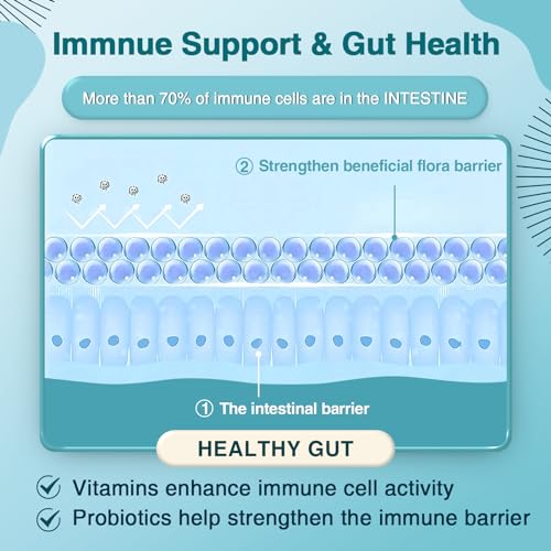 - GUT HEALTH = IMMUNE HEALTH: 70% of immune cells are in the intestine. Probiotic for Women-Men-Kids with multivitamins support healthy barrier function, cell and immune health in the gastrointestinal tract. Gut health supplements for women add vitamins to help immune cells stay alive, probiotics help strengthen the immune barrier. They work together to help keep you feeling the best in many things.