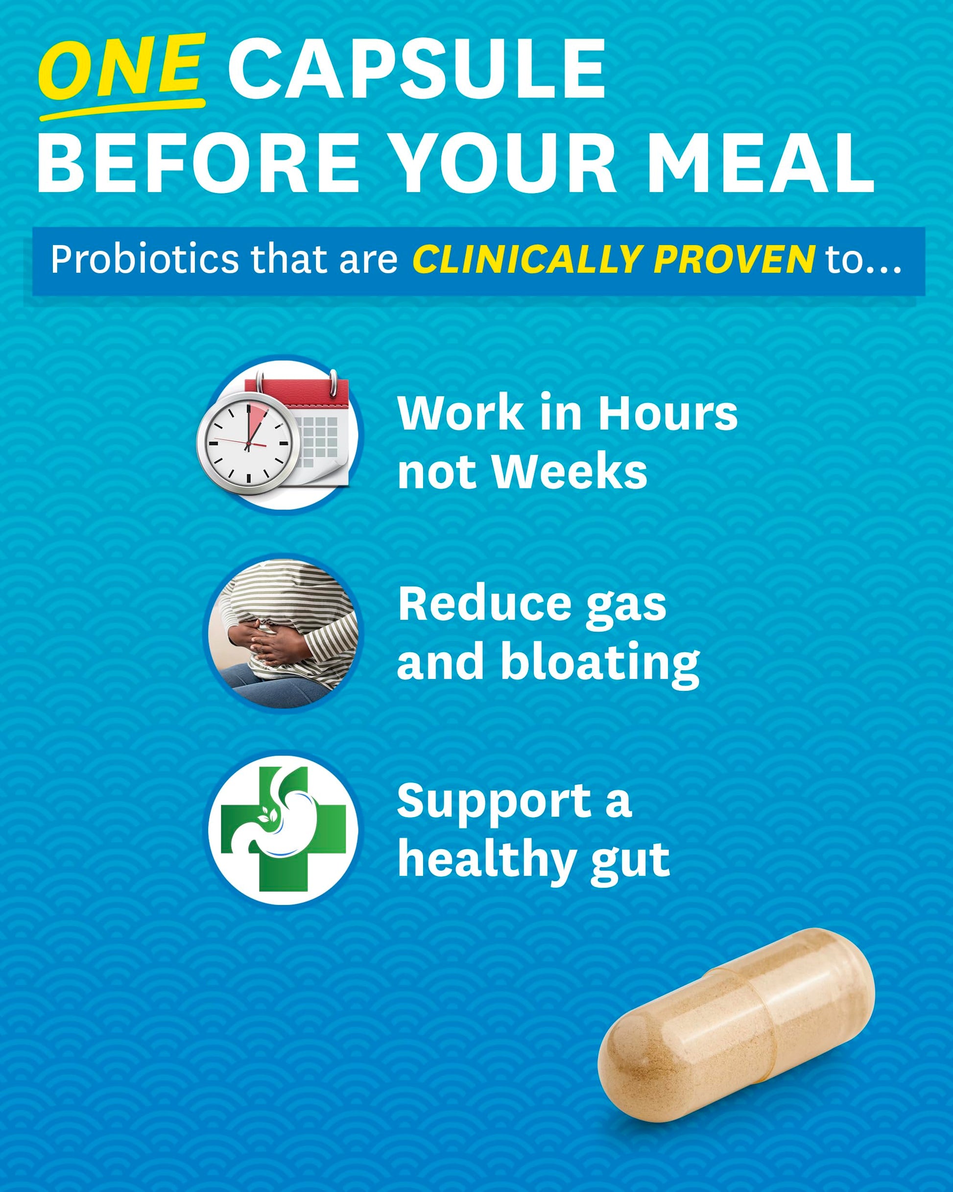 - Digestive Enzymes + Probiotics + Prebiotics: Convenient 3-in-1 gut support solution for relief from occasional bloating, gas, and discomfort from hard to digest foods.